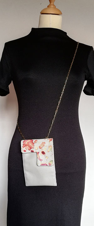 Handy-BAG Drucken IN DIE BAG statt in die Hand! Die Tasche für´s Handy - so bleiben die Hände frei und das Handy ist trotzdem griffbereit! Material: Kunstleder und Dekorstoff , Magnetverschluss und goldfarbene Gliederkette aus Metall Maße: 10x18cm Zurück